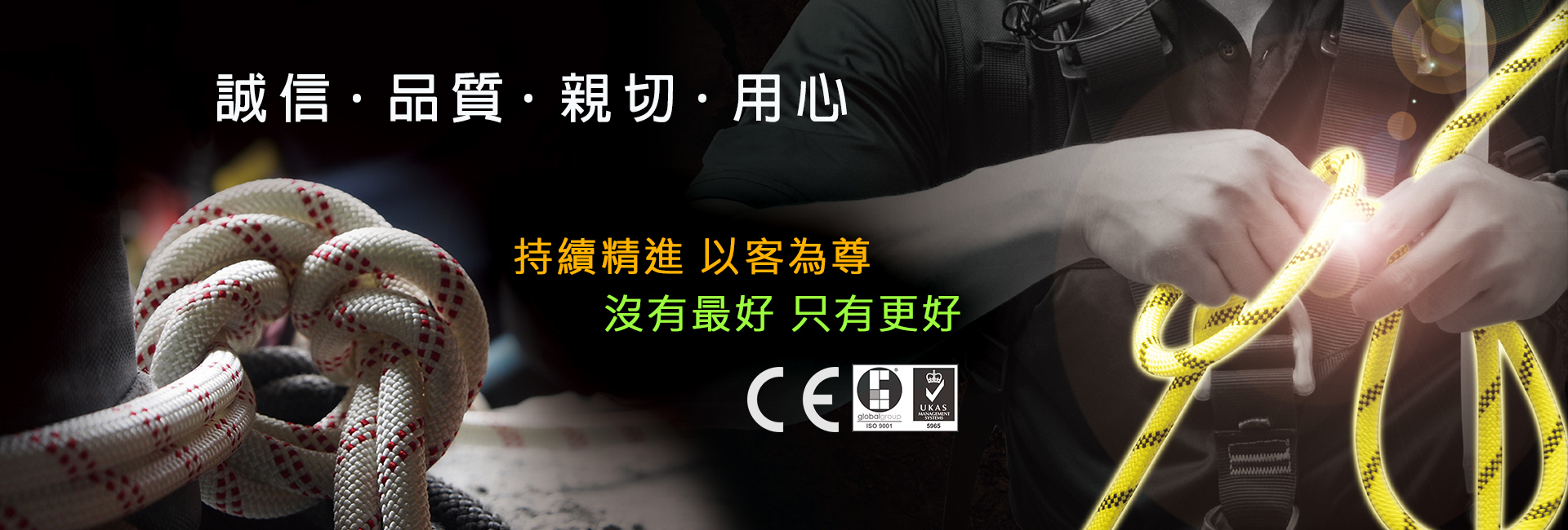 「安全+穩定」,是我們為繩索產品所下的註解。處於高空作業環境,繩索是唯一平安著陸,安心回家的路。